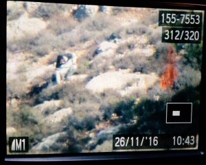 Fotografía de una cámara de seguridad mostrando lo que parece ser un hombre palestino que comienza un incendio en un campo cerca de Battir, fuera de Belén el 26 de noviembre de 2016. (Autoridad de Parques)
